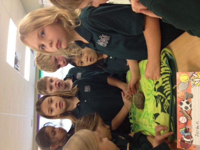 Yesterday we were reading chapter two in our book "Tales of a Fourth Grade Nothing" and the main character in the book brought home his turtle so our class had Brainna bring in her turtle for us to watch.